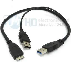 Aomoproing FOR USB 3.0 A Male to Micro USB Male 3 Y Cable with Extra USB Power for 2.5 Mobile HDD 60cm