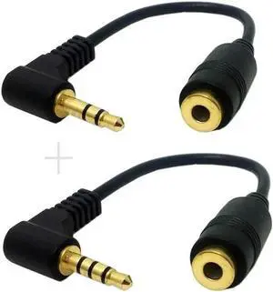 Aomoproing FOR 1Set 3/4 Poles Audio Stereo 90 Degree Right Angled 3.5mm Male to Female Cable