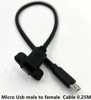 Aomoproing FOR Micro USB USB 2.0 Male Connector to Micro USB 2.0 Female Extension Cable Pitch 17.5mm With screws Panel Mount Hole