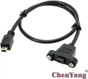 Aomoproing FOR Mini USB 5Pin Male Panel Mount Type to Female Extension for Adapter Cable with Screws 50cm