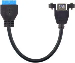 Aomoproing FOR USB 3.0 Single Port A Female Screw Mount Type to Motherboard 20pin Header Cable 25cm