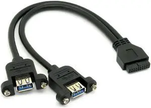 2 Port USB 3.0 Female Screw Mount Type to Motherboard 20pin Header Cable
