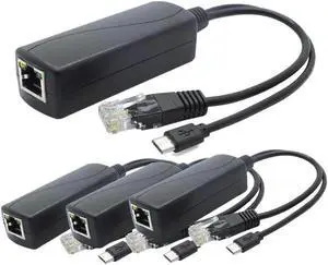 Aomoproing 4-Pack 5V PoE Splitter, 48V to 5V 2.4A Adapter with Micro-USB Plug, for IP Camera,Tablets,for Raspberry Pi and More