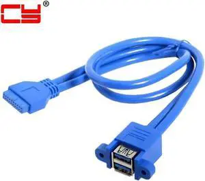 Aomoproing FOR USB 3.0 Female Panel Type Dual Ports to Motherboard 20Pin Header Stackable Extending Converter Cord for Adapter Cable 50cm