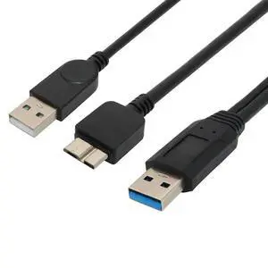 FOR Dual USB 3.0 Type A to Micro-B USB Y Shape High Speed Cable for External s/ /WD/