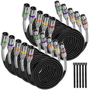 XLR Microphone Cable 25 Ft/10 Pack, Male to Female XLR Speaker Cables for Recording Studio Speaker,Podcast or PA System,3-Pin Balanced Shielded, PVC Jacket, Multicolor
