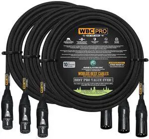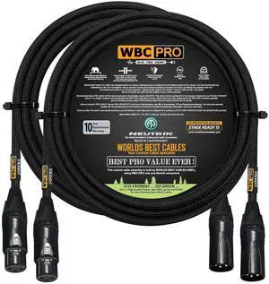 2 Units - 10 Foot - WBC-PRO-Quad Ultra-Silent Ultra-Flexible Balanced Star-Quad Cable with Neutrik Male & Female XLR Plugs & Black Tweed Jacket