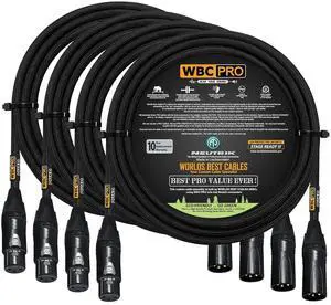 4 Units - 10 Foot - WBC-PRO-Quad Ultra-Silent Ultra-Flexible Balanced Star-Quad Cable with Neutrik Male & Female XLR Plugs & Black Tweed Jacket