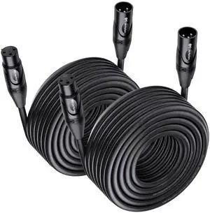 VEVOR XLR Cable 100 ft, 2 Pack, Shielded Balanced DMX Male to Female Microphone Cables, Gold-Plated 3-Pin XLR Mic Speaker Cord Wires, for Stage Lighting, Microphones, Amplifier, Mixer, Speaker Systems
