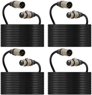 (4-Pack) 50 Foot, XLR Microphone Cable 3-pin XLR Speaker Cable Male to Female Balanced Mic Cable, Black