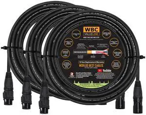 WBC-VALUELINE-2CS (22 AWG) - 3 Units - 30 FootLow-Capacitance Shielded Balanced Flexible Microphone, Active-Speaker & Interconnect Cables with Neutrik-Rean IP65 Rated Gold XLR Connectors