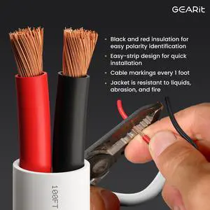 Speaker Wire 50FT, Stranded PVC Extension Cord, CL2 Rated in-Wall Fire Safety Wire, 12V Low Voltage/Tinned Copper/Flexible Cable for Automotive Wiring, Lamp Cord, Marine Cable, CCA
