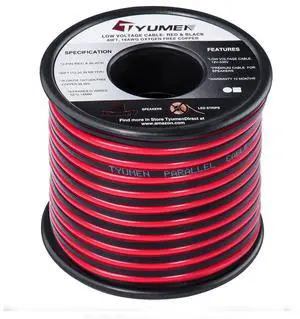 40 Feet 18 AWG Gauge 2 Conductor Stranded Red Black Car Home Stereo Speaker Audio Cable Electrical Hookup Wire - 99.95% Oxygen Free Copper Wires