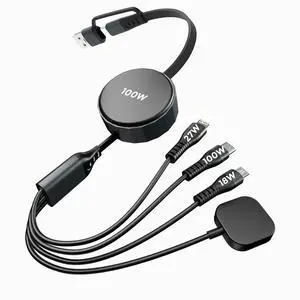 100W Retractable Multi Charging Cable Apple Watch Charger - 8 in 1 Retractable Charging Cord with Lightning/Micro USB/Type C/iWatch for iWatch, iPhone, iPad, Tablets and Multiple Devices (4ft)