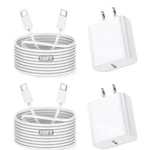 10Foot Fast iPhone Charging Cable,2Pack Super Fast iPhone USB C Wall Charger Block with 10FT USB C-C Charging Cable Type C Apple Adapter for i Phone 17Air/17 Pro/16/16e/16 Pro Max/15/iPad Pro/Air/MiniBrand: DreemTeamType: USBCompatible Phone Manufacturer: Compatible with iPhone 17/17 Air/17 Pro/17 Pro Max,iPhone 16e/16/16 Pro/16 Pro Max/16 Plus, iPhone 15/15 Pro/15 Pro Max/15 Plus, iPad Pro 7 / Pro 6 / Pro 5 / Pro 4 / Pro 3, iPad 10 / iPad Air 6 / Air 5 / Air 4, iPad Mini 6, Samsung Galaxy S25/24 / S23 / S22 / S21 / S20 / S10 / S9 / S8, Samsung Note 20 / Note 10 / Note 9 / Note 8, Samsung Galaxy Z Flip / Z Fold, Google Pixel 9 / 9 Pro / 9 Pro XL/ 8 / 8 Pro / 7 / 7 Pro / 6 / 6 Pro / 5 / 5a / 4 / 4a / 3 / 3a / 2 / 2a / XL, and moreColor: WhiteModel #: 041599487710