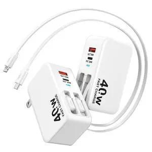 4-in-1 Retractable Wall Charger, 40W Retractable iPhone Charger Wall Plug with Dual 3ft Lightning + Type C Charging Cables, 4-Ports USB C Charger Foldable Block for iPhone 17 16 15 14 13 12 11 8 7