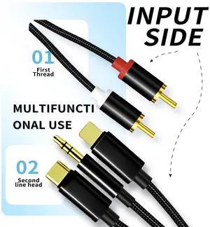 Lightning to RCA Cable Audio Auxiliary Adapter, RCA to 3.5mm Cable, USB C to 2 RCA Audio Cable (3-in-1 Audio Cable) for Power Amplifier, Car, Home Theater, Speakers, etc. (Lightning Compatible)