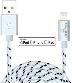 Lightning to USB Cable MFi Certified 3ft /0.9m w/Metal Connector Head and Braided Cable for iPhone X, 8, 7, 6S 6S Plus. 6 6 Plus 5s 5c 5, iPad Air, Air Mini, iPad, and iPod (White/Black)
