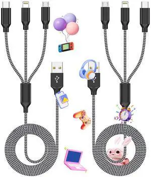 KEHIPI 3 in 1 Multiple Charging Cable(2Pack 4Ft), Braided Multi Charger Cord Fast Charging Cable Universal USB Cable with Type C/Micro USB Port for Cell Phones, iPhone 16 15 14 13 Series,Tablets, MoreBrand: KEHIPIType: USBCompatible Phone Manufacturer: Apple iPhone 16 15 14 Plus/ 16 15 14 13 12 11 Pro Max/ 16 15 14 13 12 11 Pro/ 14 13 12 Mini/ 16 15 14 13 12 11/ SE/XS / XR / XS Max / X / 8 / 8 Plus / 7 / 7 Plus / SE / 6s / 6 Plus / 6 / 5s / 5/ SE / iPad Air/Pro/Mini/ iPod/ iPads, Samsung Galaxy UItra/ S24+/ S24/ S23+/ S23/ S22+/ S22/ S21+/ S21/ S20/ S20+/ S10 / S10+ / S10e / S9+ / S9 / S8 / S8+ /Note 10+ /Note 10 / Note 9/Note 8/ S7 / S7 Edge / S6 S6 Edge / S5 / S4, LG, Google Pixel,Blackberry Q10 / Z10, Sony, Nokia, XiaoMi, Huawei, Oneplus, HTC, PS4 / 5, Moto and all phonesColor: BlackModel #: KEHIPI-241128-HeiSE2