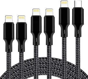 cugunu USB C to Lightning Cable 5 Pack 3/3/6/6/10FT iPhone Charger Apple MFi Certified Power Delivery Fast Charging Cord Compatible with iPhone 14/13/12/11/XS/XR/X/8 - Black
