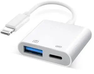 [Apple MFi Certified] Lightning to USB Camera Adapter with Charging Port, Portable USB3.0 Female OTG Cable for iPad to Connect Card Reader USB Flash Drive, Compatible for iPhone iPad