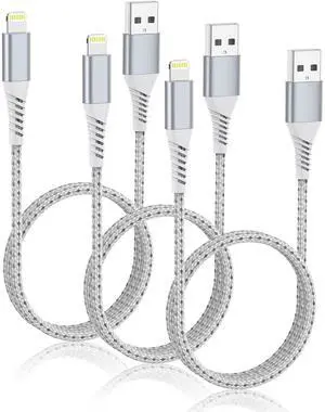 2FT Short iPhone Charger Cord 3 Pack, 2 Foot USB A to Lightning Cable Braided, MFi Certified 2 FT iPhone Cable Fast Charging for iPhone 14 13 12 11 Pro Max iPad AirPods, Short Lightning Cord for Car