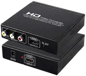 HDMI to RCA and AV 3RCA Converter Adapter, Support 1080P, PAL, NTSC for HD TV and Older TV (Black, Iron Shell)