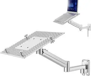 Laptop Wall Mount Bracket, Monitor Wall Mount Stand Holder, Adjustable Height and Angle, with Aluminum Alloy Tray, Safe Load-Bearing 3-6KG, for Office, Workstation,