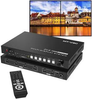 MT-VIKI 4K Video Wall Controller 2X2 with 2 HDMI Input+ 4 HDMI Output, TV Wall Controller 4K30Hz Support Point-to-Point Display + 180° Degree Rotate + 3.5MM Audio [Non-Stretching & Non-deforming]