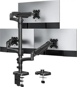 Triple Monitor Desk Mount, 3 Screen Arms for Flat/Curved Screens Up to 27 inch, Hold up to 17.6lbs Each, Fully Adjustable Gas Spring Monitor Stand, VESA 75x75/100x100