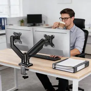 Monitor Arm Gas Dual Screen Monitor Mount Arm Adjustable Gas Spring Monitor Desk Mount Stand 17"-32" Dual Monitor Arm Mount with Mount 75/100mm Monitor Desk Mount