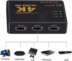 3 In 1 Out 4K HDMI Switcher 3840x2160@60hz HDMI 2.0 Switch Selector for Laptop TV Box PS3 PS4 DVD