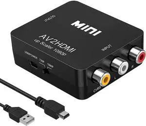 RCA to HDMI Converter, Composite to HDMI Adapter Support 1080P PAL/NTSC Compatible with PS one, PS2, PS3, STB, Xbox, VHS, VCR, Blue-Ray DVD Players