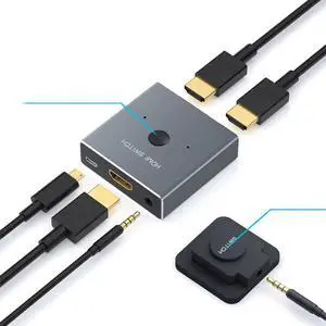 2.0 Switch 4K@60HZ HD 4 Port HDMI Switcher 4 In 1 out Audio Separation with 3.5mm Analog Audio Digital Fiber Coaxial Port Remote Control