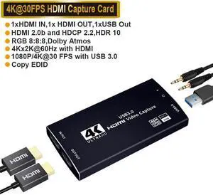 Feature: 4K60 Video Capture Card: Support maximum input resolution up to 4K HDR at 60Hz and capture video and output up to 4K 30Hz. USB 3.0 super high speed transmission, no delay, no freeze, without frame lag. It will bring you high-quality livestream visual effect.