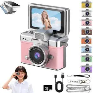VoltSync Mini Keychain Digital Camera Retro Mini Digital Video Camera Small bodycam 1080P FHD Recording with 0.96" IPS Screen with 6 Retro Filters AVI Format-Ideal for Phone Transfer (Pink, 32G)