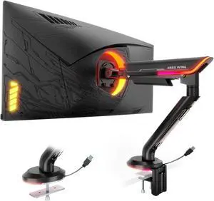 ARES WING Single Monitor Mount with RGB, Heavy-Duty Gaming Monitor Arm fits for 24"-57" Ultrawide Screen, Adjustable Computer Monitor Stand Holds Up to 60LBS with VESA Mount, Clamp & Grommet, Black