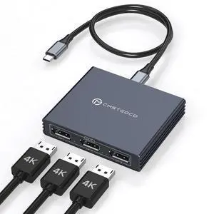 USB C to Display Port Splitter 3 Monitors with 100W PD Port 4K60HZ/4K120Hz(2DP Ports) USBC to DisplayPort Splitter 1 in 3 Out MST HUB Supports Extended(Windows) and Mirrored Displays