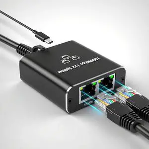 - Specification: Ethernet Splitter 1 to 3-Black, dockteck, 3, 1000 megabits_per_second, ethernet, usb_c, Aluminum, Black, Plug and Play, ADSL, hubs, switches, TVs, set-top boxes, routers, wireless devices, computers, network cable types (Cat6, Cat7, Cat8, Cat5, Cat5e)ADSL, hubs, switches, TVs, set-top boxes, routers, wireless devices, computers, network cable types (Cat6, Cat7, Cat8, Cat5, Cat5e)
