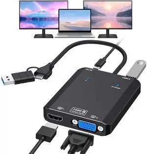 VIXLW HDMI Splitter Extended Display for Dual Monitor, 1080p@60Hz USB A or USB-C to HDMI Vga Adapter for Extended Display of Laptop Monitor Desktop TV, Mac OS Windows Android