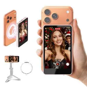 SYNCO XView Selfie Monitor Screen for iPhone 17 Series & Android, Wireless 4K/1080p Magnetic Vlog Back Camera Monitor with 164FT Range, Built-in Speaker for YouTube TikTok Live Streaming Photo(Pink)