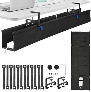 Under Desk Cable Management Tray, 36" Large No Drill Cord Organizer with Easy to Clean Oxford Fabric, Clamp On Power Stripe Holder for Home Office & Gaming Space