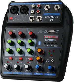 DJ Audio Mixer, DJ Mixers 4 Channel Sound Board with Bluetooth, NEW BAXS Sound Mixer Board XLR/1/4" Interface, USB/MP3 Computer Input 48V Phantom Power Stereo DJ Studio Streaming KTV StageBrand: NEW BAXSPart Number: Black-M4Specification: , NEW BAXS, , , , , , , 1.1 pounds, Black-M4, 2024-05-17T07:00:00Z, 52161500, NEW BAXS, Black-M4, , 7.4 L x 2.12 W x 6.22 H inches, , USB Corded Electric, false, false, 4, 0.599 kilograms, 12-month worry-free after-sales service., 1, , , , 7.4 inches, 2.12 inches, 6.22 inches, 7.3914 L x 19.9898 W x 22.1996 H centimeters, 2024-04-16T09:12:10.987Z, unknown, has_fcc_idPower Supply: USB Corded ElectricModel #: 927717395730
