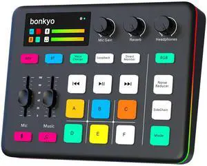Gaming Audio Mixer & USB Interface with XLR Microphone, Bluetooth 5.0, RGB Effects, 48V Phantom Power, Voice Changer, G1 Sound Card for PS5, TikTok Live Streaming, Podcasting (Black)Brand: bonkyoSpecification: , bonkyo, Black, , , , , 3.5mm, 1 pounds, , , 43211719, Bonkyo, , , 5.55 L x 7.09 W x 2.05 H inches, , USB Powered, false, false, 4, 0.59 kilograms, 1 year., 1, 3.5mm Audio, , , 5.55 inches, 7.09 inches, 2.05 inches, 6.5024 L x 19.8882 W x 26.3906 H centimeters, 2025-04-02T10:09:53.539Z, unknown,Power Supply: USB PoweredDimension: 5.55 L x 7.09 W x 2.05 H inchesModel #: 472579794061