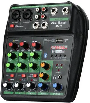 DJ Audio Mixer, DJ Mixers 4 Channel Sound Board with Bluetooth, NEW BAXS Sound Mixer Board XRL/1/4" Interface, USB/MP3 Computer Input 48V Phantom Power Stereo DJ Studio Streaming KTV Stage,Balck- Brand: NEW BAXS