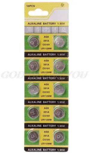 10PCS Watch Battery AG8 1.55V Li-ion Button Coin Cell Batteries LR1120 391 SR1120 191 LR55 Toys Remote Camera CPU Drop Shipping
