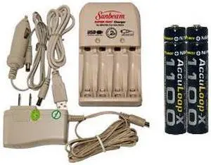 Sunbeam AA / AAA Battery Charger + 4 AAA AccuPower AccuLoop-X NiMH Batteries (1100 mAh)