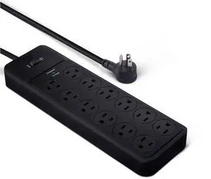 12-Outlet Surge Protector Power Strip, 4000 Joules, 8ft Extension Cord, Rectangle, for Home, Office, Gaming Room, Black