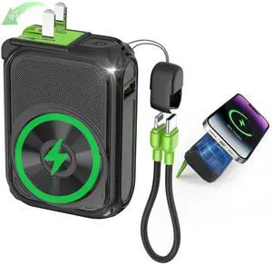 P05 Portable Charger, Magnetic Power Bank, Small Wireless PowerBank, Battery Pack 10000mAh Travel Essentials Fast Charging with Built in Cable, Foldable Wall Plug for iPhone,Samsung,Andriod