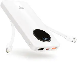 Aioneus Power Bank, 10000mAh Portable Charger with Built in Cables Fast Charging 22.5W USBC in/Out Travel PowerBank Battery Pack for iPhone 16 15 14 13 12 Samsung Galaxy S24 A15 Android Phone(1 Pack)
